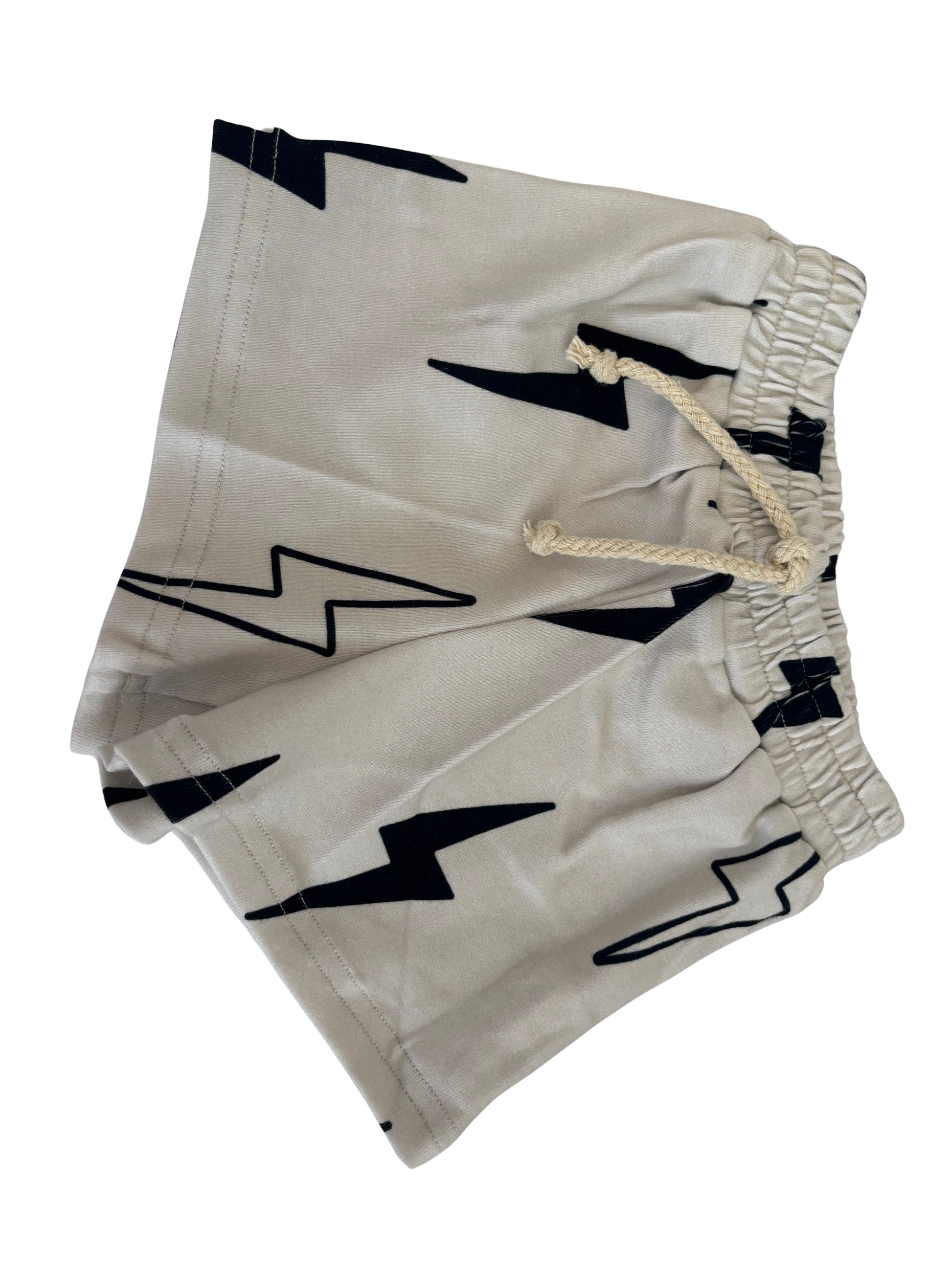 Adorable summer shorts set! Colors are sand background with black bolts. Made with quality cotton and modern designs these sets are essentials for your little sweeties closet!